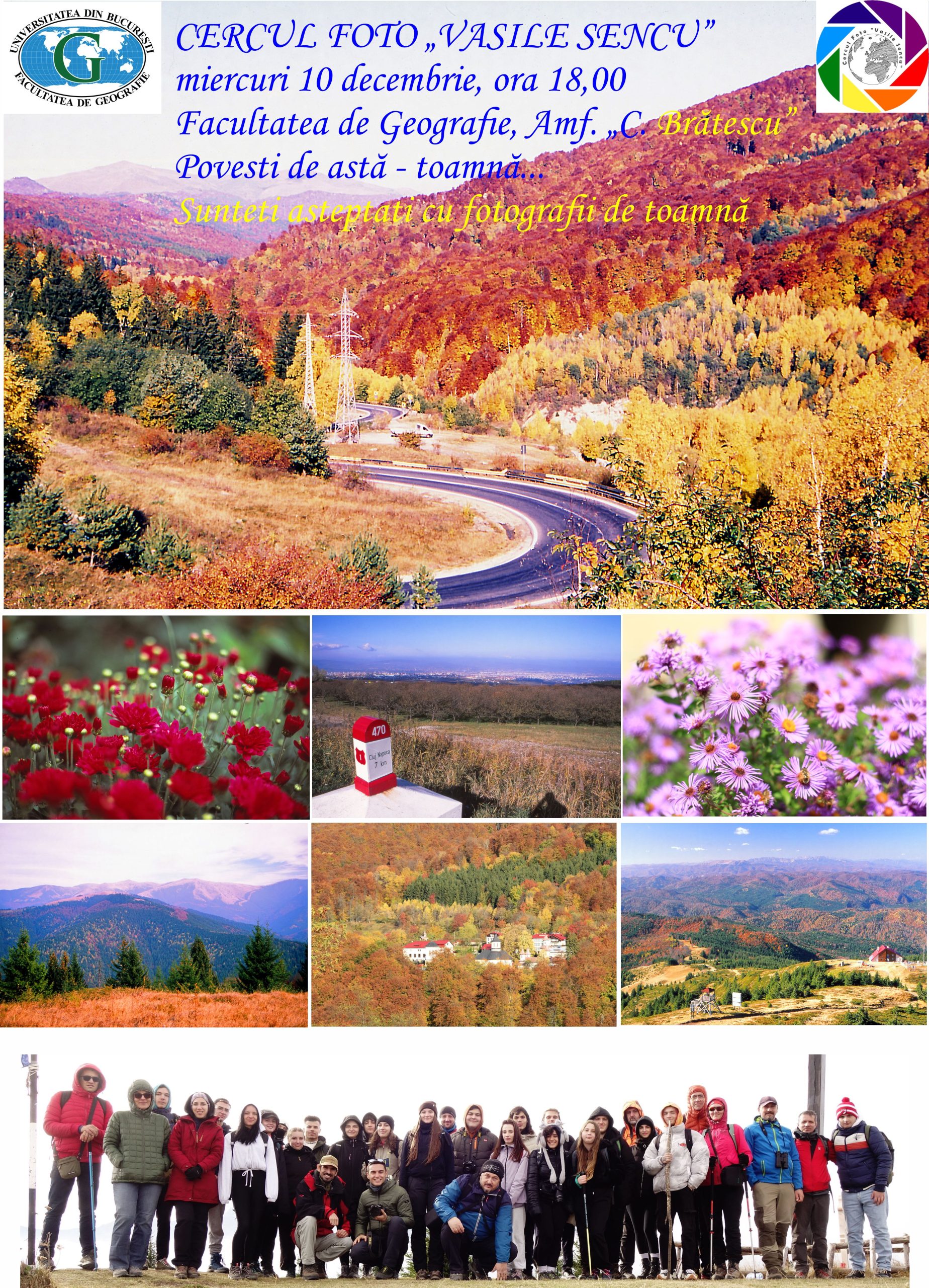 – Cercul Foto „Vasile Sencu” – miercuri, 2 noiembrie 2022, ora 18:00, Amfiteatrul George Vâlsan