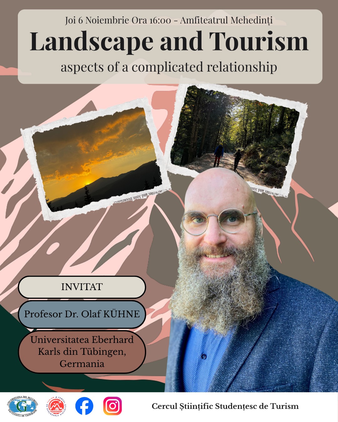 – Întâlnire Cercul Științific Studențesc de Turism – joi, 14 noiembrie 2024, ora 10:00, amf. Vâlsan (INVITAT: Profesor dr. Olaf Kühne, Universitatea Eberhard Karls din Tübingen, Germania)